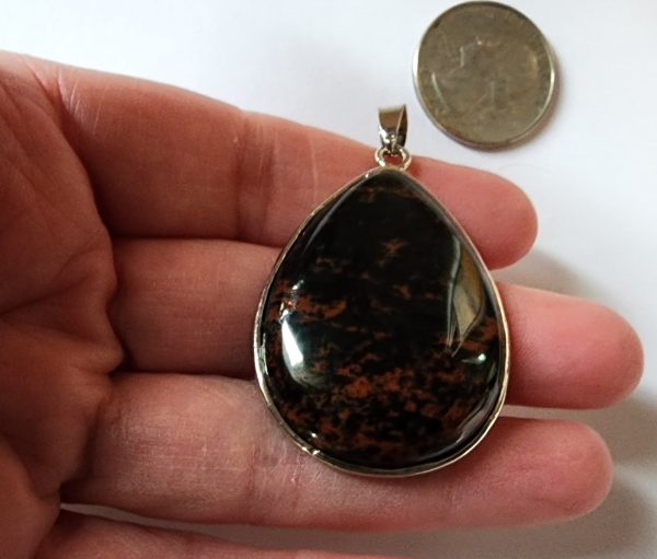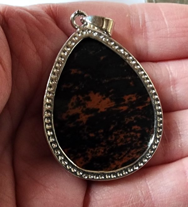 Gemstone PendantThe colors are black and like a deep terracotta color - photo of back shows better than front photo hard to captureSize is approx 1.5" long x 1.5" wide This Item is part of warehouse sale sectionNO RETURNS and is being sold as isAdditional information