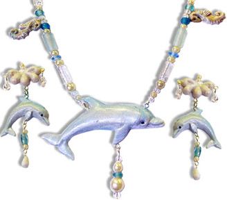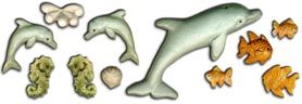 PJ030 Fun With Dolphinsthis polymer clay mold has eleven openings. Three dolphin, one large and two smaller ones which can be molded and put together and the seam smoothed to make a solid leaping dolphin.There are also two sea horses, two tiny fish, two tropical fish that are mirror images and can be molded and placed back to back to make a two sided charm. There is also a splash.All of the parts in the mold are from original sculpts by Penni Jo.Additional information