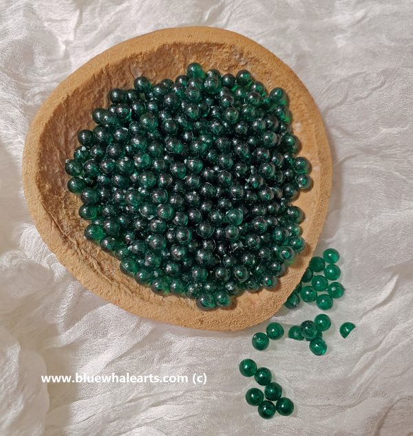 Dark Green 4mm - 100 beads per packageBead photos are of 4mm Dark Green the quantity in photo is more than 100 - for color purpose.Gourd Light Beads and Drill Bit SizesNote: This is my experience working with gourd light beads.First, First, First - save the piece of gourd you cut out for the electrical.I found working with the beads and different types of gourd, that there is some variability in what size to make the hole for the bead. One would think that you would use the same size drill bit for 4mm bead, but I found that the type of gourd and brand of drill bit creates some variability.Regarding the gourd, some gourds have a very hard shell with little meat such as a cannon ball, apple gourd, or basketball, thus not having as much “give” when pushing in the bead. If you need to push so hard on it, chances are you will crack the gourd. It is at this point, you should go to the next size up drill bit, or work the hole as described below.Using the piece of gourd you cut out for your electrical - DO TEST HOLES!Bead Size | Start with This size first | I found some gourds needed to use this size |