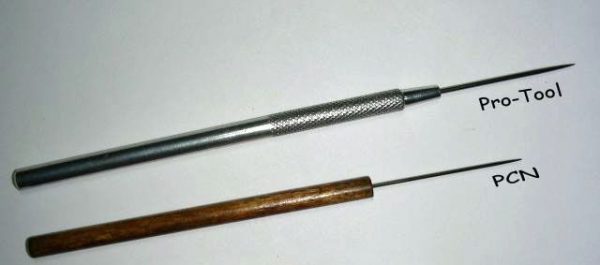 This 6 3/4" long tool has a sharp steel needle and is firmly set in a textured aluminum handle providing a firm grip. This tools works beautiful for piercing your gourd. The size of the hole is perfect for doing rim work.WARNING: Some dusts created by using power tools contains chemicals known to the State of California to cause cancer and birth defects or other reproductive harm. Use adequate protection. For more information, go to: www.p65warnings.ca.gov