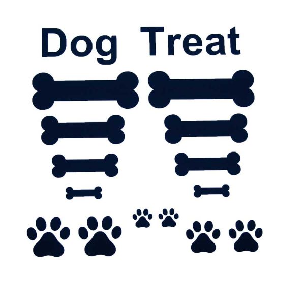 - Size: Largest dog bone 2 ½ x 7/8, smallest bone is 7/8” x ¼”, Text is ¾” tall, prints are 1” x 1” and ½” x ½”