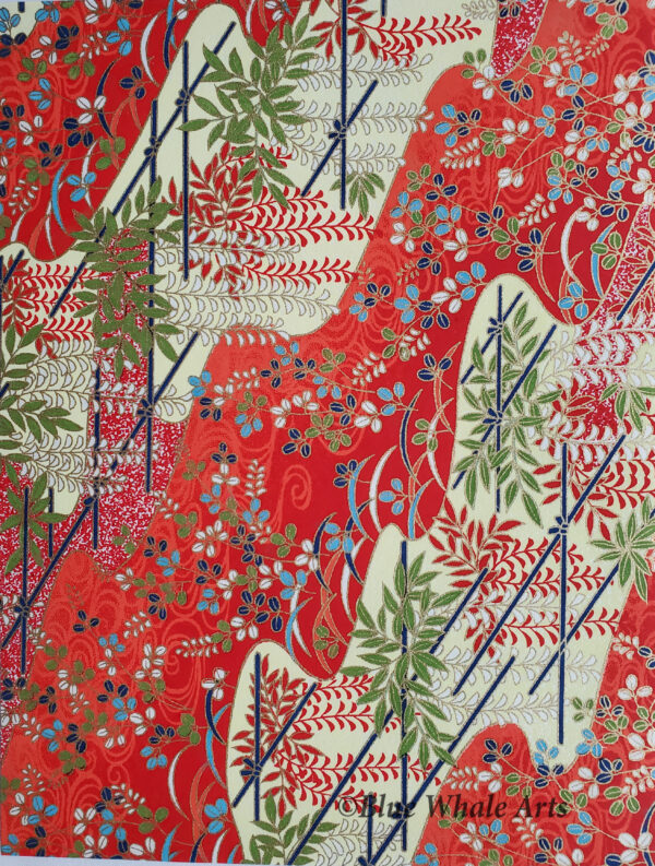 Washi is the Japanese word for the traditional papers made from the long inner fibers of three plants, wa meaning Japanese and shi meaning paper. As Japan rushes with the rest of the world into the 21st Century, and more modern technologies take over, machines produce similar-looking papers which have qualities very different from authentic washi.Luscious, vibrantly-coloured Chiyogami papers are hand-printed using the silk-screen technique. In this laborious process each color is applied using a separate screen. Sometimes as many as 12 colors, including gold or other metallic, may be used to create a single pattern.Check out our video – making Gourd ornaments with Washi PaperSize – 6” x 8”Qty: 1